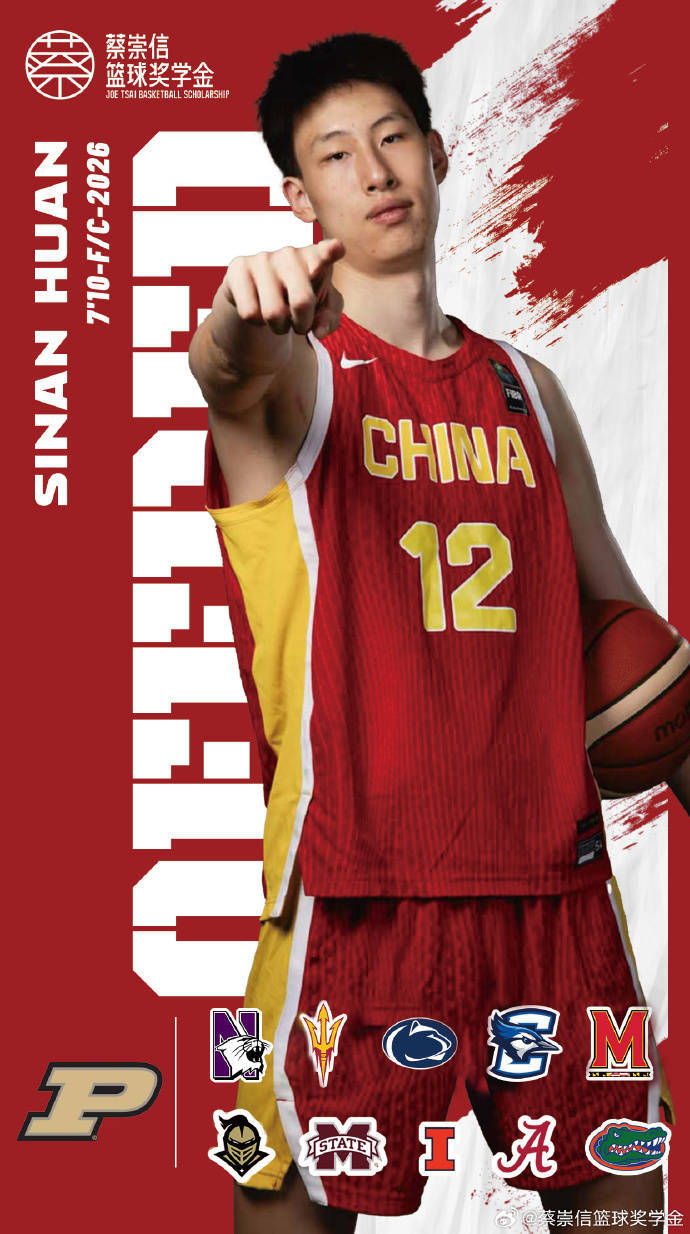 北京时间2025年7月31日,据蔡崇信篮球奖学金官方透露,2022级学员郇斯楠(215cm-F/C-2026)收获来自NCAA D1 普渡大学(Purdue University)的offer。